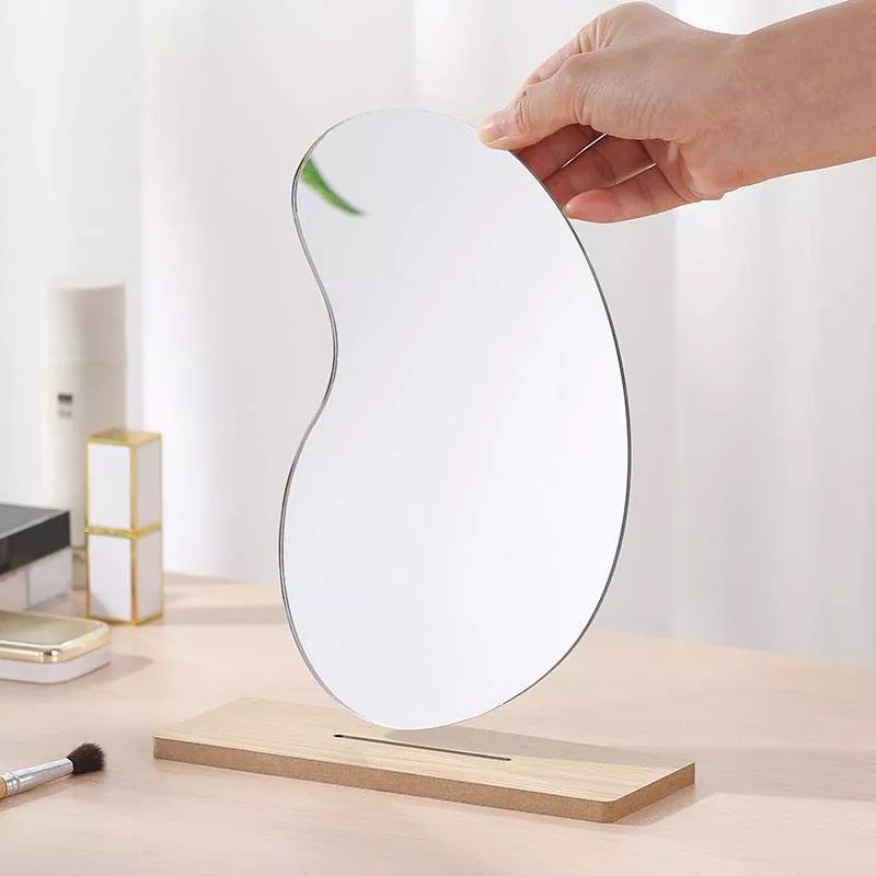 ပုံမှန်မဟုတ်သော လှိုင်းတွန့်နေသော စားပွဲတင်မှန်သည် ခေတ်မီအိမ်အလှဆင်ခြင်းနှင့် ချောမွေ့စွာရောစပ်ထားသည့် ရိုးရှင်းသော၊ အနုပညာမြောက်သည့် အသွင်အပြင်တစ်ခုပါရှိသည်။ ကြည်လင်ပြတ်သားသောဖန်သားပြင်နှင့် ချောမွေ့သောသစ်သားအခြေခံဖြင့်ပြုလုပ်ထားသောကြောင့် မိတ်ကပ်လိမ်းခြင်း၊ အသားအရေထိန်းသိမ်းမှုလုပ်ရိုးလုပ်စဉ်နှင့်နေ့စဉ်လိမ်းခြယ်ခြင်းအတွက် စံပြပုံပျက်သောရောင်ပြန်ဟပ်မှုကို ပေးစွမ်းသည်။